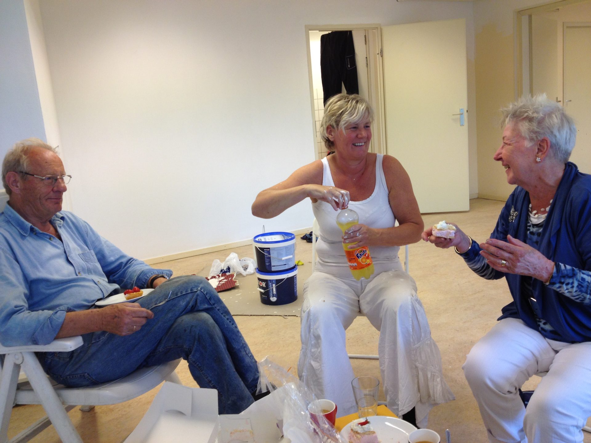 - Eind juni 2012 zouden we onze vorige werkplek in de Jan van Nassaulaan verlaten, op de valreep hadden we eind mei de St Jacob gevonden. Hier proosten we op het tekenen van het huurcontract.