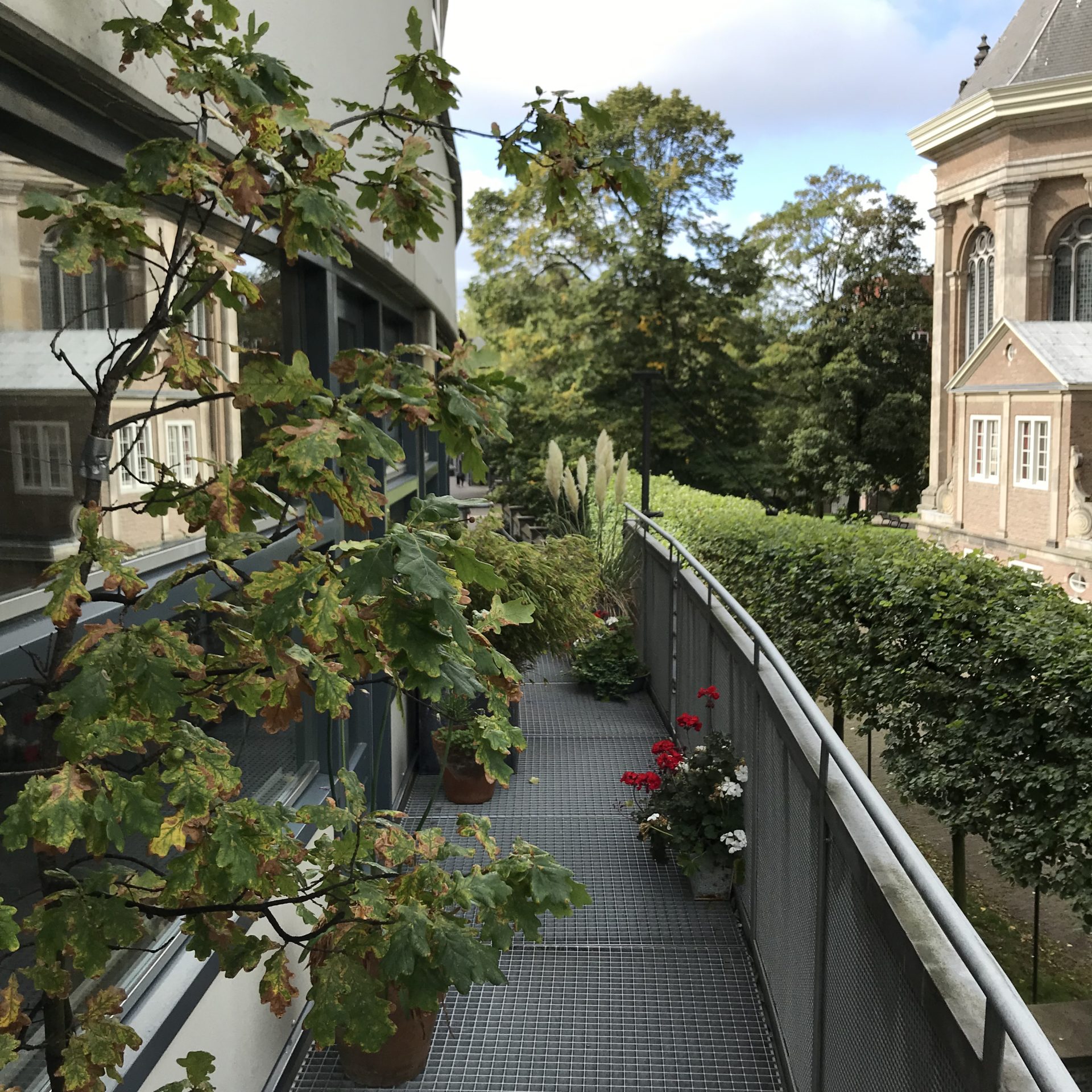 Ons ‘balkon’ met met het eikenboompje wat ooit bij het graf van Marc zijn vader opkwam en groeide. Mooi om zo zijn zegen dichtbij te hebben. Wel bijzonder is dat het boompje afgelopen zomer op zijn best was en nu ter ziele is gegaan.
