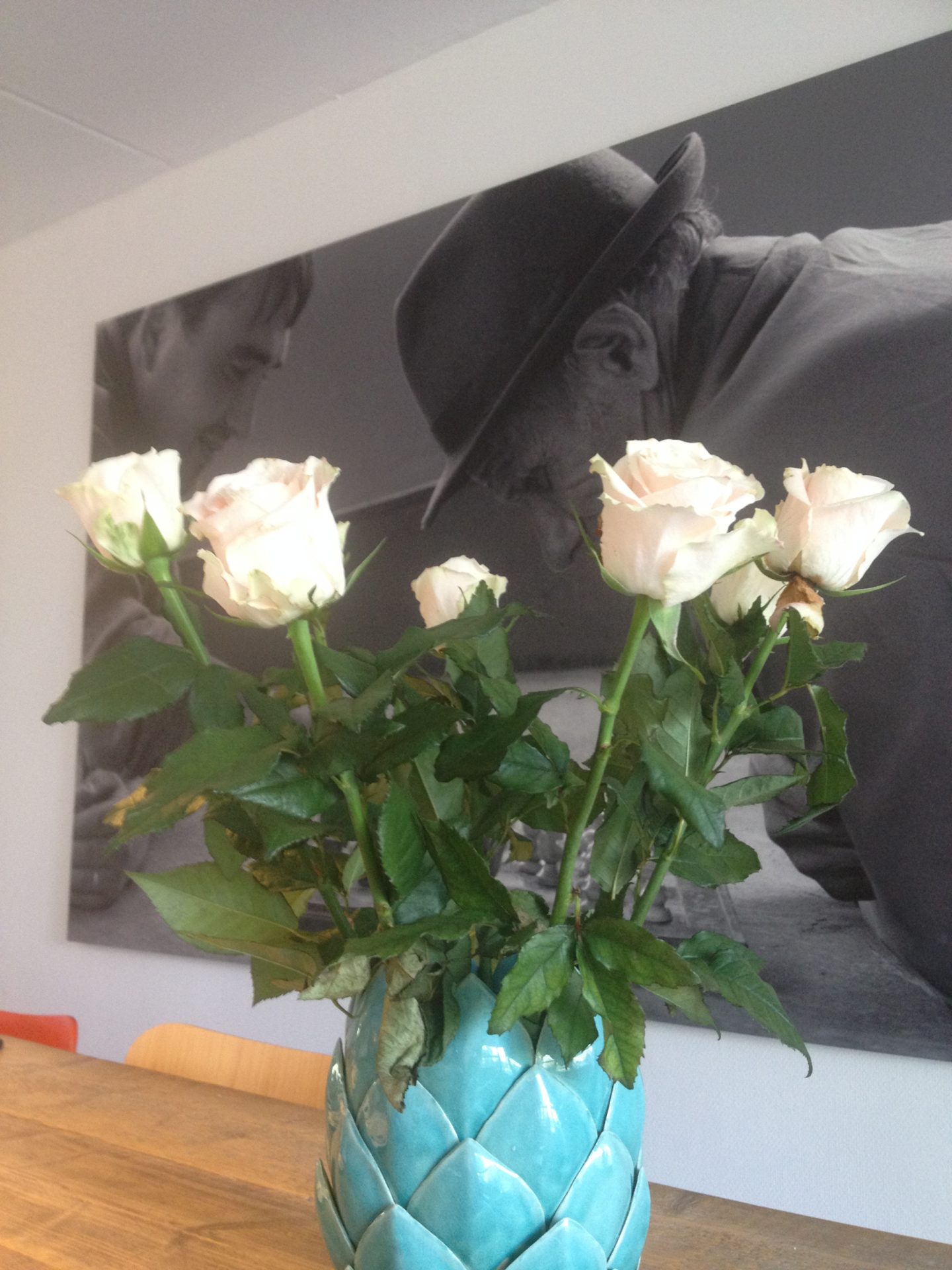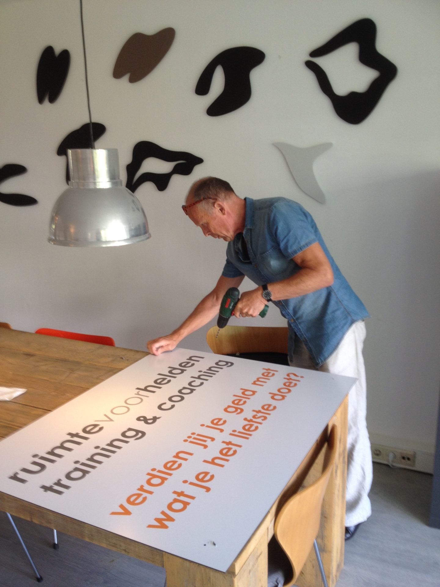 Ongemerkt zijn daar heel veel uurtjes in gaan zitten: bloemen, koekjes en koffie halen. Papier, lege flessen en restafval wegbrengen. Opruimen en schoonmaken. Stofzuigen in een regelmatig patroon om een mooie grond te bieden voor wat ging plaats vinden.