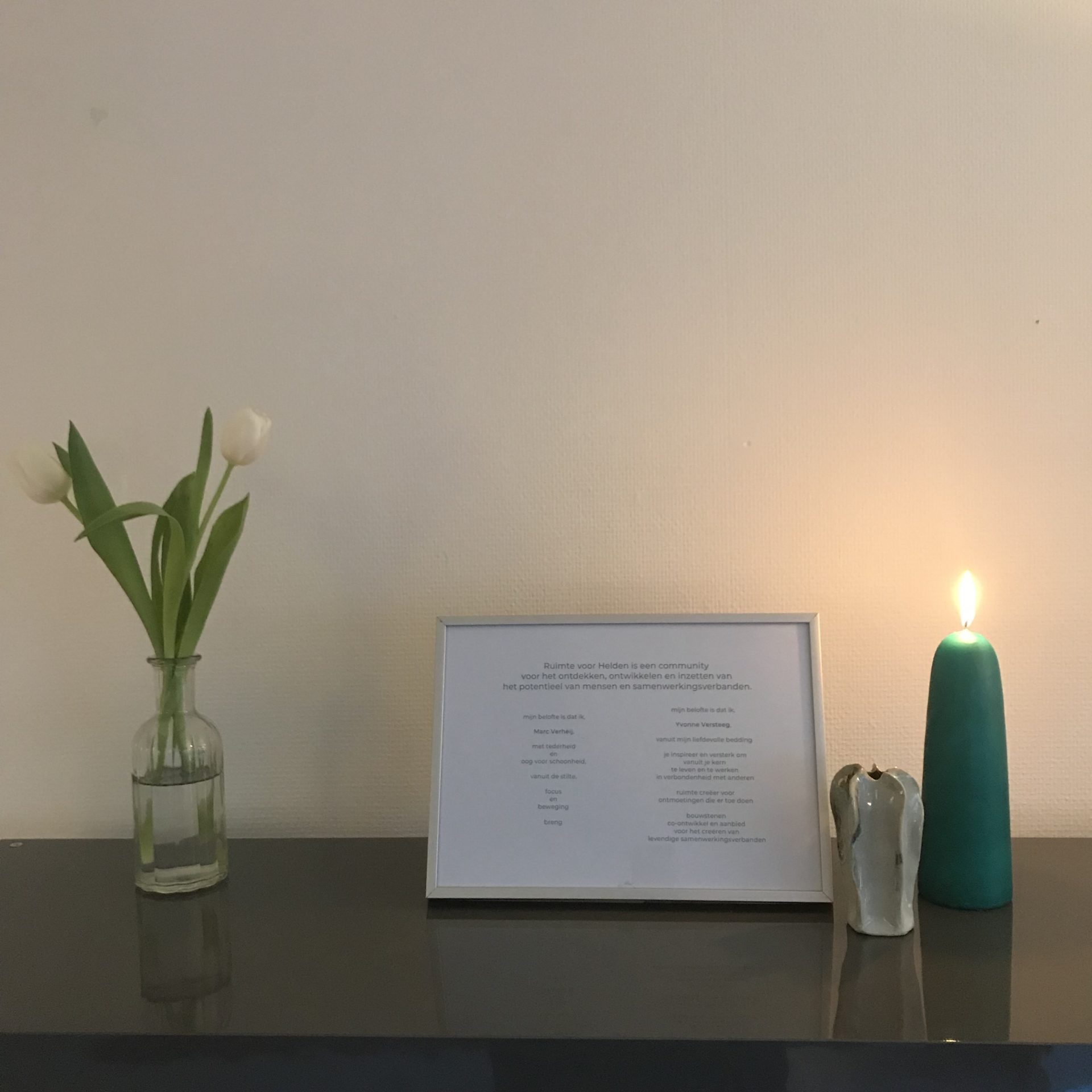 Elke ochtend als we binnenkwamen: ramen open, frisse energie naar binnen. Kaarsjes aan, oh ja, die in t gangetje naar de toilet ook niet vergeten. Lichten en muziekje aan. Even rondlopen en zelf aankomen. Zodat we beschikbaar waren voor wie we die dag zouden ontmoeten.