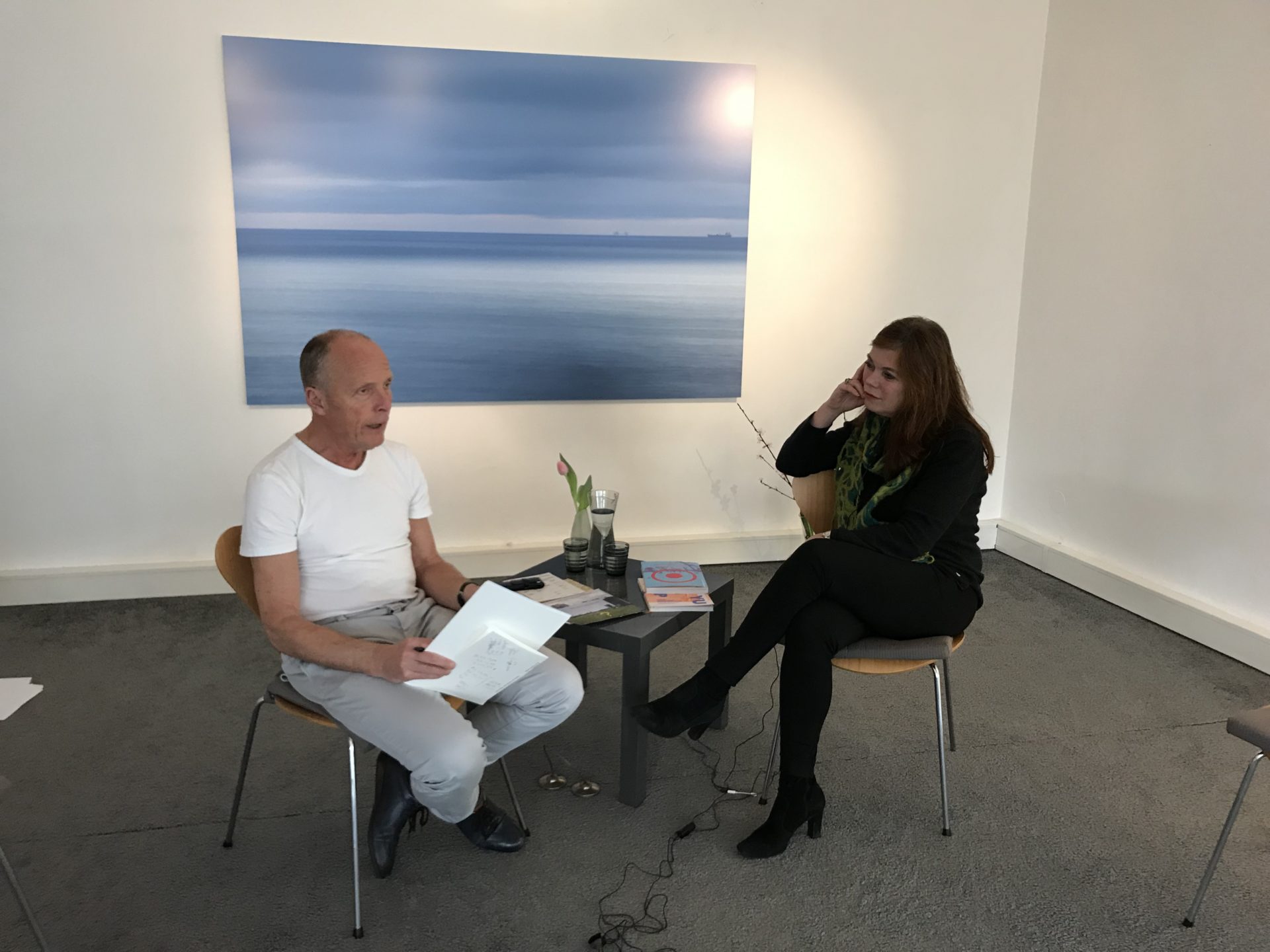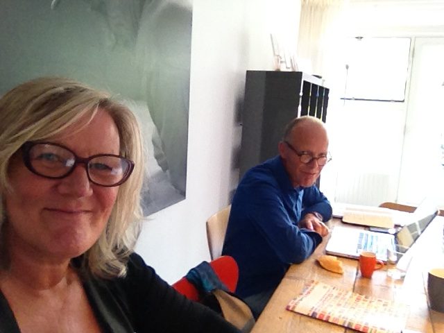 - Tussen de ontmoetingen door achter de laptops.